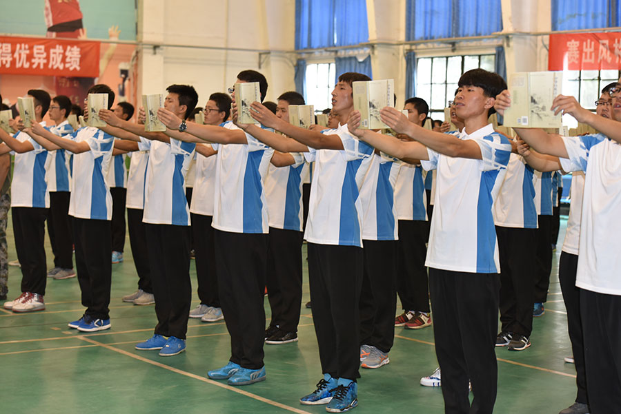 9月23日下午2:30,我院在体育馆隆重举行2016级高职新生军训汇报表演暨总结表彰大会,检阅新生的军训成效,表彰奖励军训中涌现出的先进集体和个人。学院党委书记、校长伊逊智、副校长徐圣月、副校长张琴、教务部部长王建斌、学工办主任兼保卫部部长朱云洁及高职班主任参加了大会,大会由张琴副校长主持。
