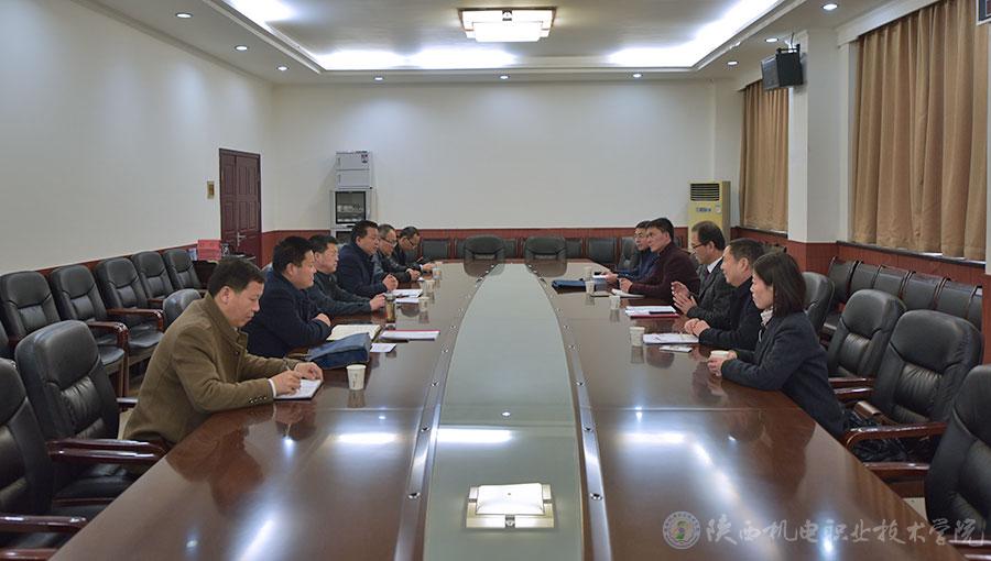 2017年12月13日,beat365手机版官方网站党委书记、院长伊逊智、党委副书记邓新治一行六人,赴眉县召开“双百工程”结对帮扶专题会。眉县县委副书记魏建儒、县政府副县长赵晔以及县扶贫办、教育局等部门领导出席会议。参加会议的还有学院党政办主任赵争东、机电工程系主任白娟娟、信息工程系主任杜海军、网络信息中心主任徐建。