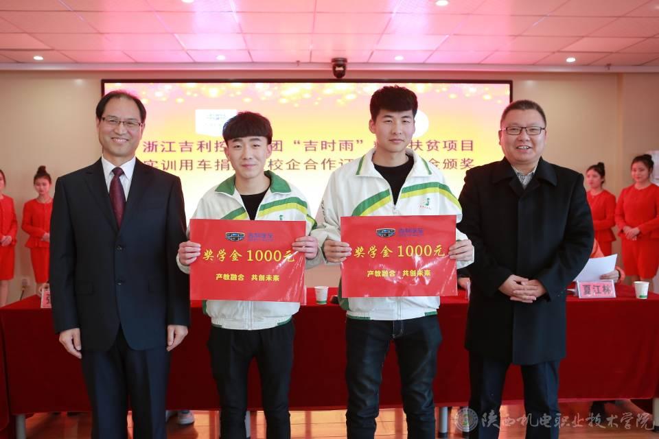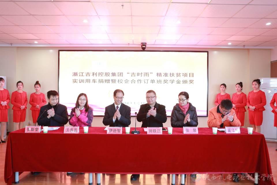 新年伊始,beat365手机版官方网站2018年1月10日在汽车机电大楼4楼会议室隆重举行“浙江吉利控股集团‘吉时雨’精准扶贫项目实训用车捐赠暨2017年度校企合作订单班奖学金颁发仪式”。