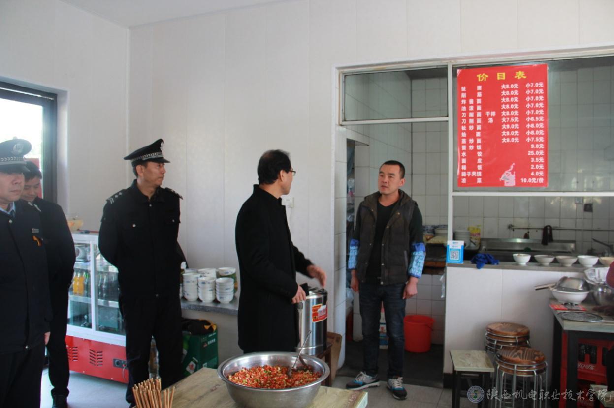 排查中,重点关注小吃摊点、饭馆。详细询问学生就餐时间、消费标准,检查了卫生情况,就学生用餐安全方面,伊书记强调食品安全要严格按照卫生标准,严把食材安全采购环节,确保学生安全用餐。