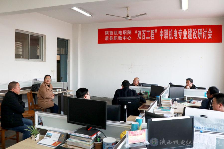 为全面落实“双百工程”教育帮扶工作,助推眉县脱贫攻坚,11月27日,beat365手机版官方网站党委书记伊逊智,党委宣传部长、工会副主席李明,信息工程系主任杜海军等一行8人赴眉县职教中心开展“双百工程”教育帮扶,专业建设研讨活动。