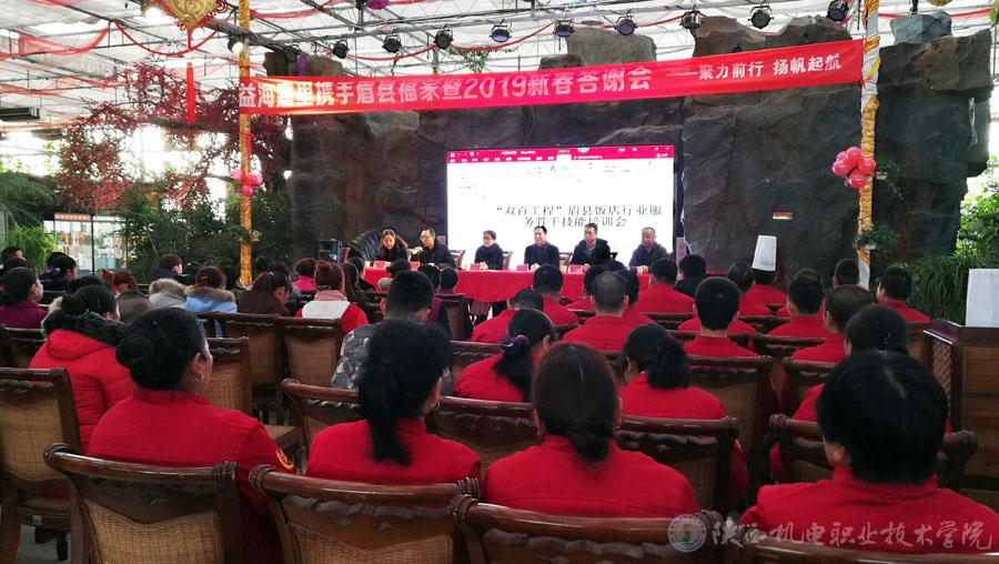 2018年12月13日,由我院主办的2018年“双百工程”眉县饭店行业服务骨干技能公益培训会,在眉县滨河新区宝深逸乐园按计划如期举行。我院党委副书记、纪委书记邓新治,党委宣传部部长、工会副主席李明代表学院参加了培训会活动。培训会由眉县职教中心副校长周文婷主持。