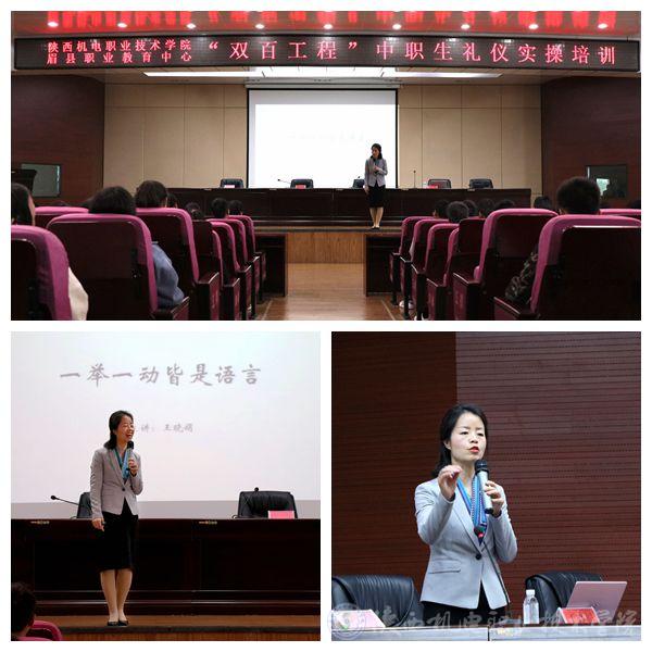 为落实和推进“双百工程”工作,推动帮扶院校校园建设,弘扬礼仪文化,唱响文明之歌,营造良好的育人氛围,打造职教校园新形象,5月15日下午,在学院眉县产学研一体化教育培训基地眉县职教中心开展礼仪培训,我学院特邀国家注册高级礼仪培训师,高级茶艺师,教育部核心职业能力礼仪指导师王晓娟副教授为参加礼仪大赛的选手及旅游专业学生200余人进行题为《一举一动皆是语言》的讲座。我院党委宣传部部长李明代表学院致辞。