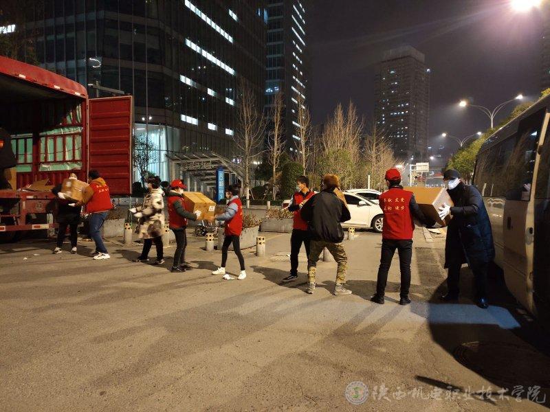 为甘肃医疗队搬运物资(图中穿黑色衣服的是卢子昕)