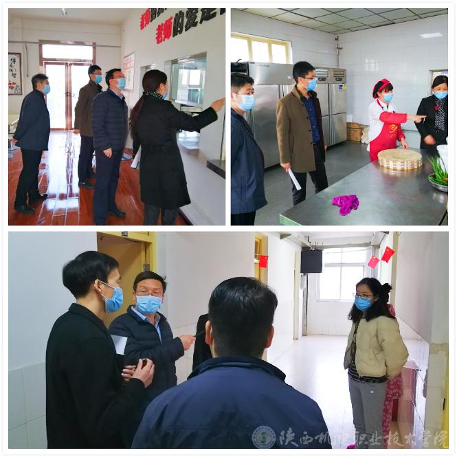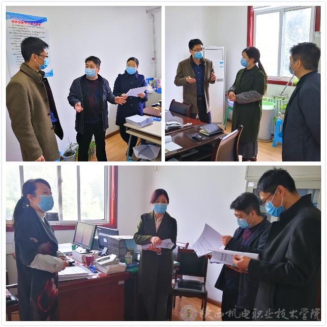 检查组一行走访了人事处、党委宣传部、教务处、学生处/保卫处、后勤基建处、招生就业处、党政办等疫情防控工作重要部门和教工餐厅、教工隔离场所,听取了各部门疫情防控工作开展情况,认真了解疫情防控组织领导、工作机构运行、疫情防控工作安排、制度建设以及工作落实情况,对教职工和学生动态摸排及上门入户调查情况,食堂、校舍等重点部门卫生防疫情况,值班和校园门禁管理、登记、体温检查情况,隔离场所的设立、使用情况,医疗物资储备情况,以及“停课不停学”的工作安排及实施情况等,督促相关部门和人员按照各自职责做好防控工作,并向坚守在疫情防控一线的工作人员致以亲切慰问,同时看望了隔离场所的教职工。