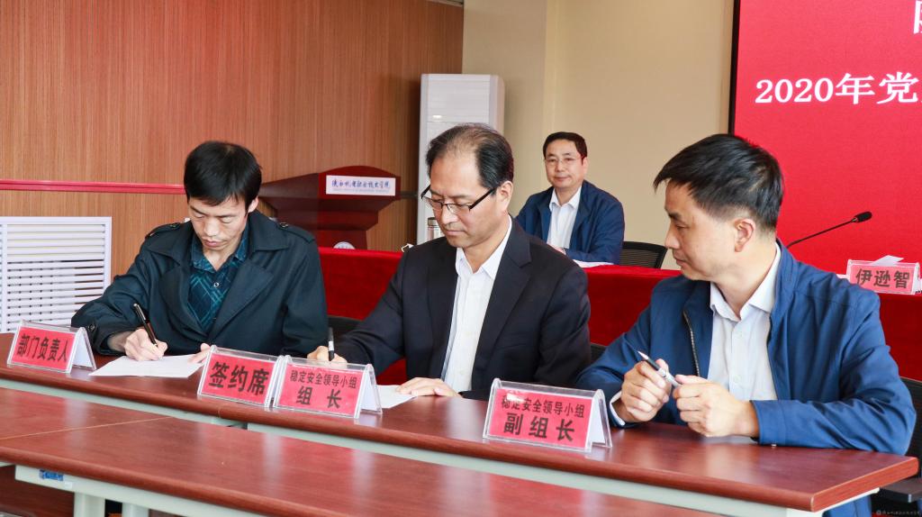 会上,党委书记伊逊智代表学院党委与分管领导、部门负责人代表签订《2020年beat365手机版官方网站党风廉政建设责任书》。稳定安全领导小组组长伊逊智与稳定安全领导小组副组长张新堂、部门负责人代表签订《2020年beat365手机版官方网站稳定安全工作责任书》。