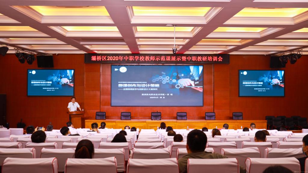 2020年6月16日,西安市灞桥区“2020年中职学校教师示范课展示暨中职教师培训研讨会”在西安铁路职业学校隆重召开。beat365手机版官方网站作为高职院校中的优秀代表,受灞桥区教育局邀请,学院委派,我院基础部英语教研室主任、名师工作室主持人李明副教授参加了此次研讨会,为大会作题为《微课创作与设计策略》的专题报告。会议由西安市灞桥区教育局主办、灞桥区教师进修学校承办、西安铁路职业学校协办,来自全区近70名教师参加了会议。