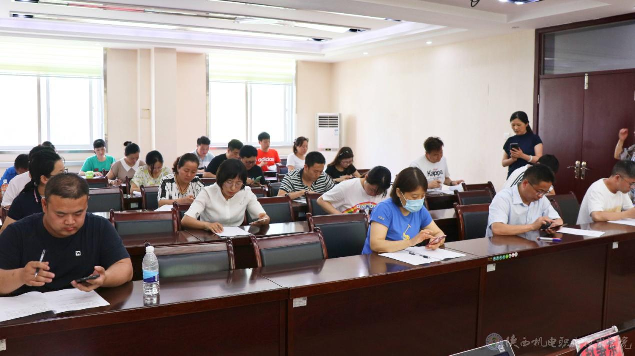 会后,学院纪律检查室、党政办工作人员发放了廉政考试试题本,要求在规定时间内完成考试。