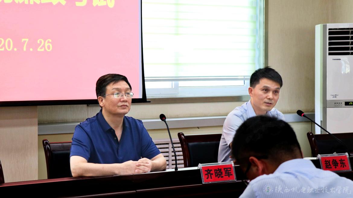党委副书记、纪委书记齐晓军(左)及党委委员、院长助理赵争东讲话