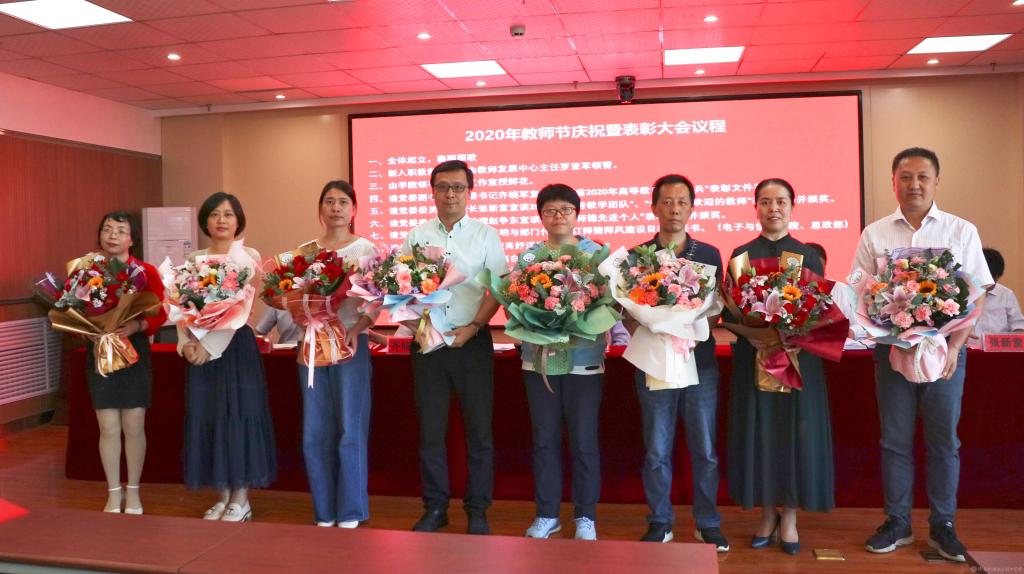 9月10日是全国第36个教师节。为树立典型、表彰先进,营造尊师重教的良好氛围,beat365手机版官方网站在汽车机电大楼四楼视频会议室举行2020年教师节庆祝暨表彰大会,向全校教师致以节日问候和祝贺,对优秀教育团队及先进典型进行表彰。党委书记伊逊智,党委副书记、院长向纪明,党委副书记、纪委书记齐晓军,党委委员、副院长张新堂,党委委员、院长助理赵争东在主席台就座,会议由向纪明主持。