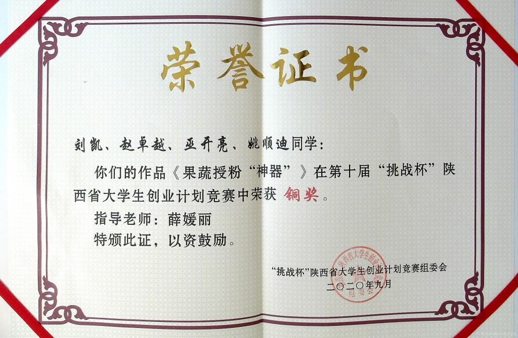 经过组委会专家评审,beat365学生万文亭、赵林芬和包亚东在白兰老师的指导下,参赛作品《南乔易GO街-靖远枸杞》获得省赛金奖,同时该作品也代表我省参加国家比赛;刘凯、赵卓越、巫开亮和姚顺迪在薛媛丽老师指导下,参赛作品《果蔬授粉“神器”》获得省赛铜奖。