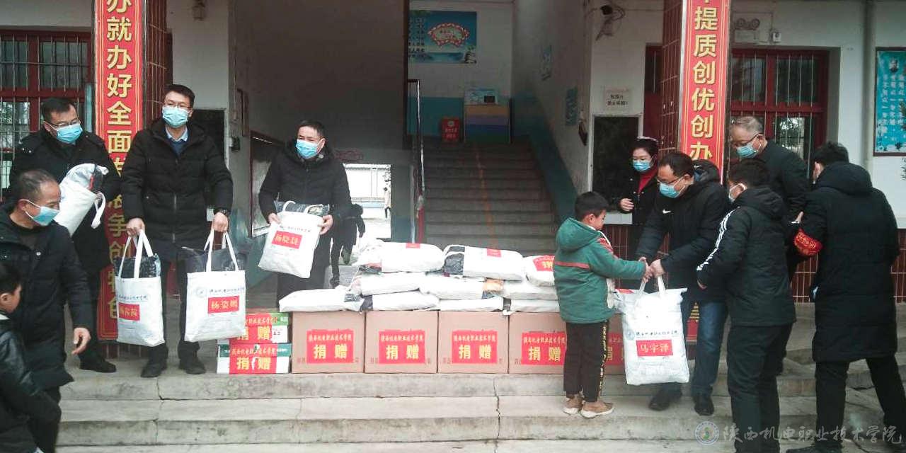 眉县汤峪镇羊仓堡小学是beat365手机版官方网站“双百工程”教育帮扶学校之一,地处偏僻的太白山脚下,教育教学资源匮乏,beat365扶贫领导小组一直关心着该校贫困学生的学习生活。12月29日,2021年元旦来临之际,beat365党委副书记、院长向纪明,党委副书记邓新治,党委宣传部部长、工会常务副主席李明一行在眉县教体局领导的陪同下,代表学校为羊仓堡小学再次送去关爱。