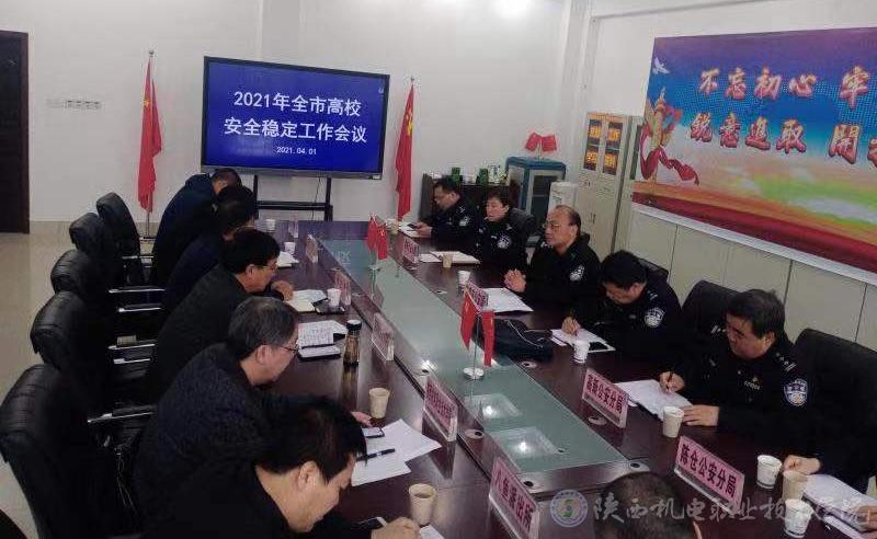 4月1日上午,宝鸡市2021年高校安全稳定工作会议在宝鸡职业技术学院召开,会议由市公安局经文保支队支队长封建轩主持。宝鸡文理学院、beat365手机版官方网站、陕西三和职业技术学院、宝鸡职业技术学院等高校保卫处处长和宝鸡市各区经文保大队负责人参加会议,beat365保卫处处长王建斌参会。