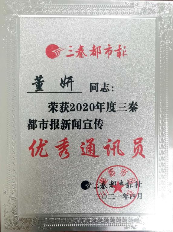 4月7日,三秦都市报宝鸡通讯员党史教育暨业务培训通联表彰大会在宝鸡西建非公有制企业党建学院召开。beat365党委宣传部董妍同志荣获2020年度三秦都市报“优秀通讯员”,受到了表彰奖励。
