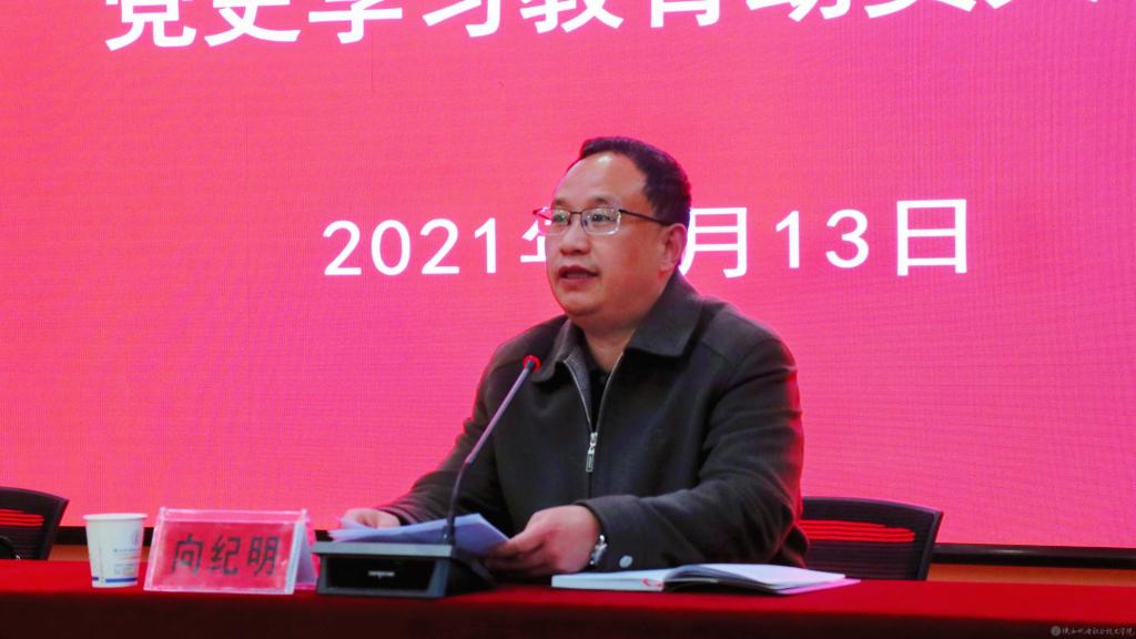 会上,向纪明传达了党中央、陕西省委、省委教育工委和省教育厅关于党史学习教育的有关精神。