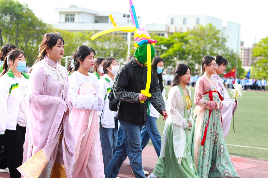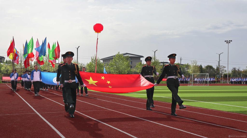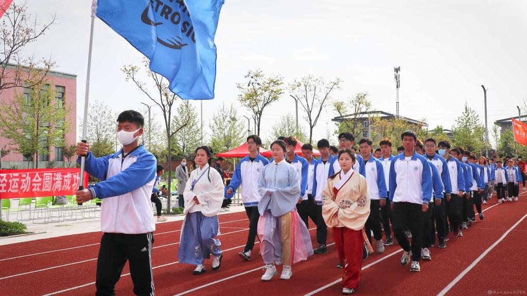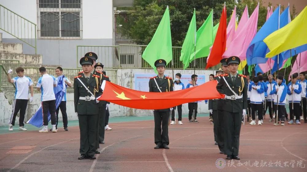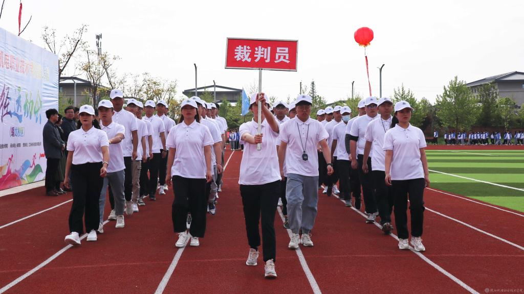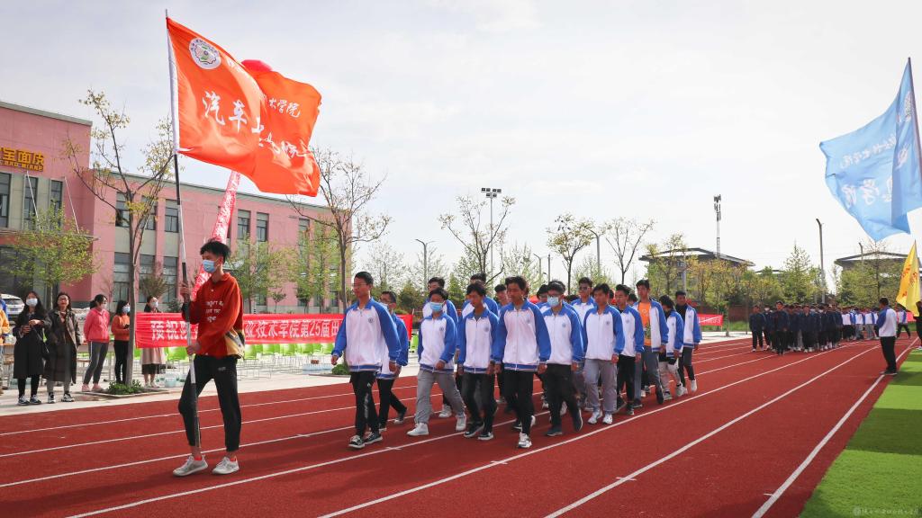 伴随着激情欢快的《运动员进行曲》,国旗方队、校旗方队、彩旗方队、裁判员方队、建党百年标志方队以及各二级学院方队依次入场,方队口号嘹亮、步伐整齐、精神抖擞,引来阵阵喝彩。