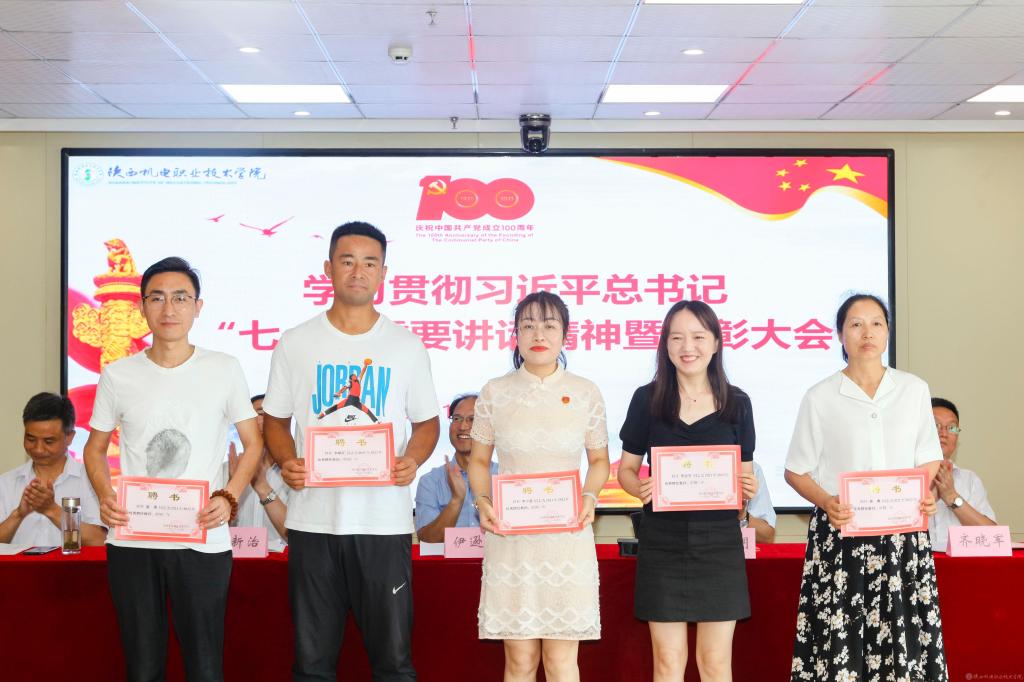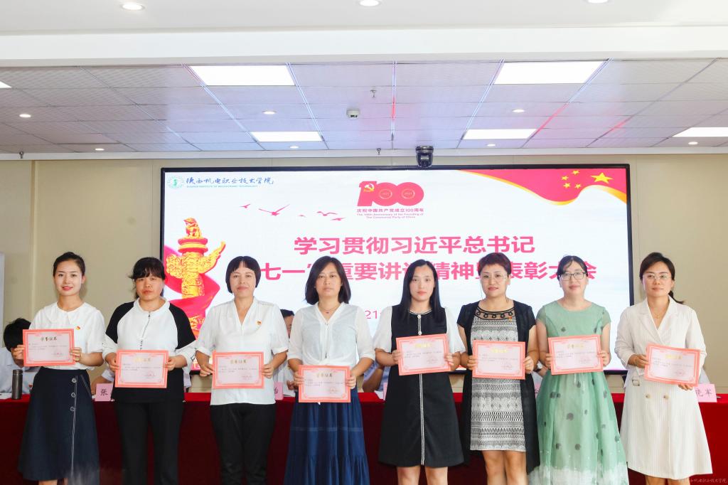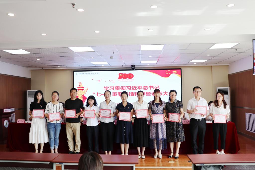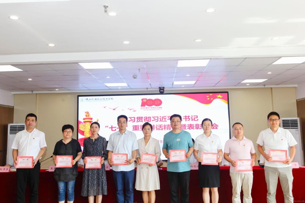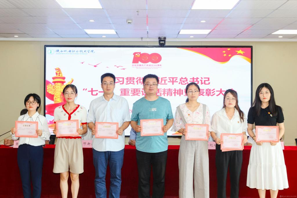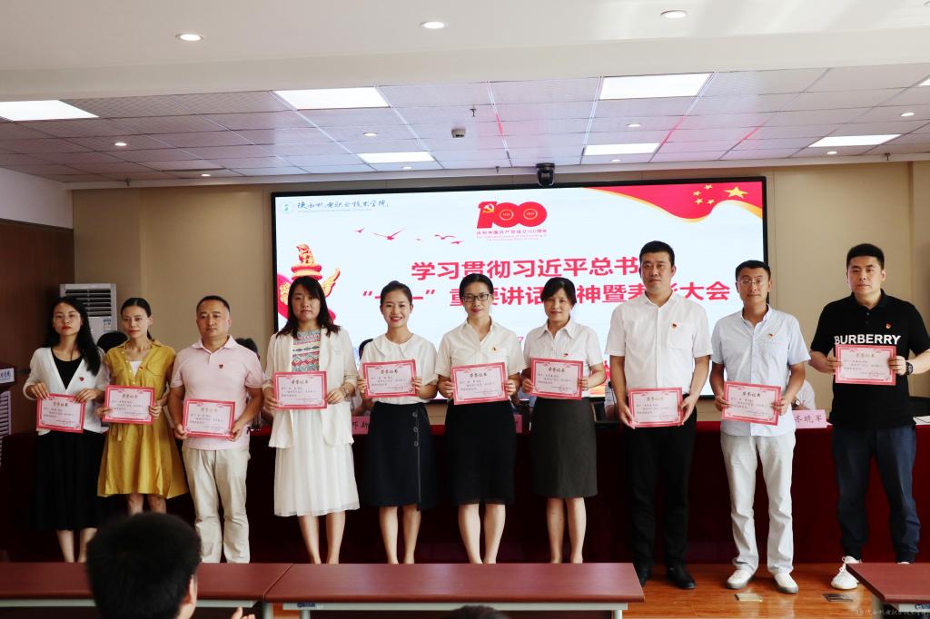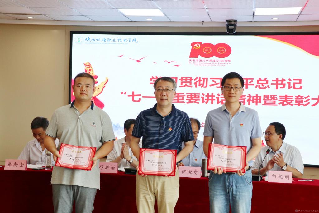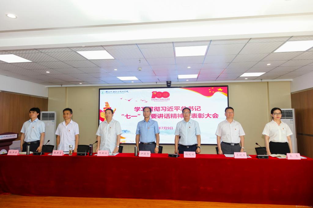 伊逊智代表学校党委,向受到表彰的先进集体、先进个人表示热烈的祝贺,对全校党员、干部和教职员工的辛勤付出和勤奋工作致以崇高的敬意和衷心的感谢。同时,提出三点工作要求和殷切希望:一是讴歌党的丰功伟绩,永远感党恩、听党话、跟党走;二是强化党员身份意识,增强使命感、责任感、事业心;三是跟上职教发展形势,坚持抓党建、优管理、促发展。他希望全校党员、干部和教职员工以党的百年华诞和党史学习教育为新的契机,深入学习贯彻习近平总书记在庆祝中国共产党成立100周年大会上的重要讲话精神,以落实立德树人根本任务和办好人民满意的职业教育为主线,以争创省级智能制造特色“双高”院校为目标,以抓好党建为引领,以优化管理为支撑,以教学改革为抓手,携手同心、再鼓干劲,奋力前行、筑梦圆梦,推动学校事业在“扩规模、提质量、创特色、树品牌”的新征程上取得新成绩、铸就新辉煌!