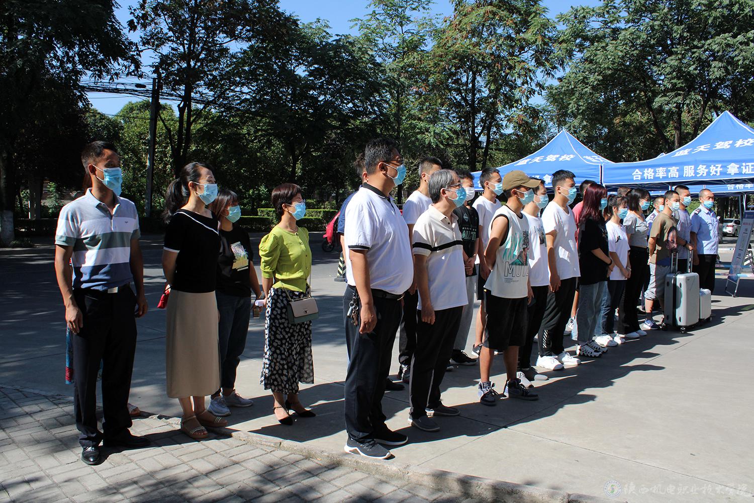 宝福路校区校门口设省内学生和省外学生返校两条通道,通道内设置1.0米间距分隔线,学生按照队列分隔和间距分隔排队接受进校检查。