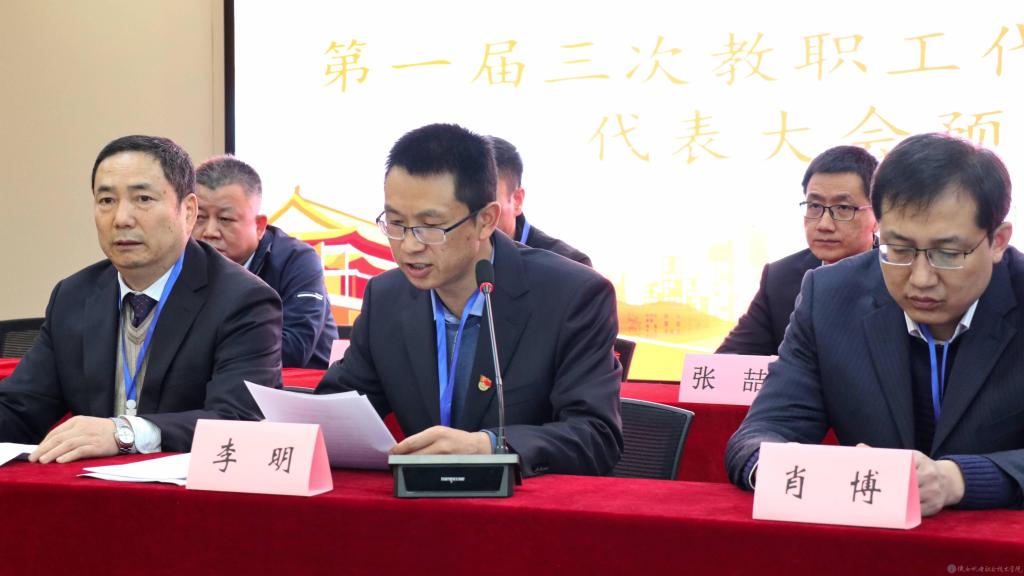 beat365第一届三次教职工代表暨工会会员代表大会,预备会上,工会常务副主席李明向全体代表做大会筹备情况的报告,并主持通过了大会主席团成员建议名单、大会秘书长建议名单、大会议程。主席团第一次会议通过了大会执行主席名单及大会议程。