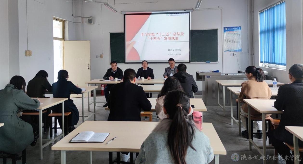 10月12日下午,铁道工程学院在宝福路校区召开学习学校“十四五”发展规划专题会,学校党委副书记邓新治、铁道工程学院院长、支部书记贾九荣及学院全体教师参会,会议由铁道工程学院副院长卢彦峰主持。