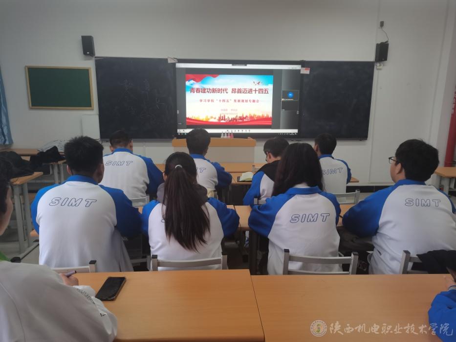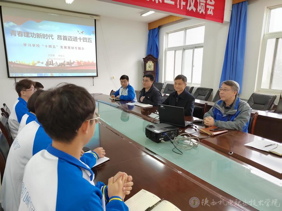 张新堂带领大家回顾了学校跨越式发展的奋斗历程,总结了学校“十三五”取得的成绩,又重点解读了“十四五”发展规划对于学校实施“三步走”发展战略的重大意义,同时指出,同学们是学校发展的主体,大家要从思想、目标、行动上与学校发展共融,为学校发展贡献自己的青春力量,作为陕机电学子更应感到自豪、振奋和鼓舞。他还向所有学生干部提出三点希望,一是加强党史学习教育,用党的先进思想武装自己,积极参与学校发展建设;二是认真学习学校“十四五”发展规划,要把个人成长成才和职业规划融入到学校“十四五”发展中,代领全体同学共同进步;三是充分发挥学生干部的模范带头作用,引导同学们积极参与到学校的日常管理中来,凝聚智慧,为学校发展建言献策。