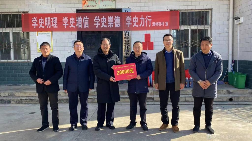 随后,代表beat365手机版官方网站党委,向澄铭窑村定点帮扶的6户困难村民送去了棉被、大米和菜油,为澄铭窑村修建卫生室、贯通便民桥、援建卫生厕所举行了捐赠仪式。鼓励他们树立信心,直面困难,增加收入,早日在乡村振兴的浩瀚潮流中激流勇进,过上幸福美好新生活。
