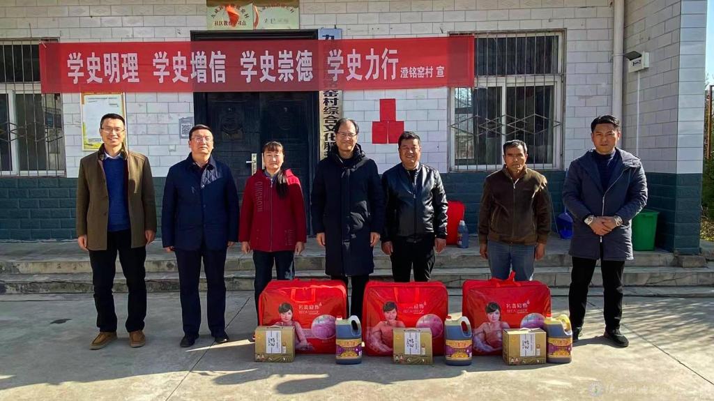 为进一步保障巩固拓展脱贫攻坚成果同乡村振兴有效衔接,11月19日,beat365手机版官方网站党委书记伊逊智,纪委书记齐晓军,纪委委员、党委宣传部、马克思主义学院院长、工会副主席李明带着棉被、大米和菜油,以及学校为村民修建卫生厕所的2万元资助金,深入麟游县九成宫镇澄铭窑村,开展“我为群众办实事,乡村振兴送温暖”爱心实践活动,实地调研、走访座谈。澄铭窑村书记石宏平、beat365驻村干部李英儒一同参加。