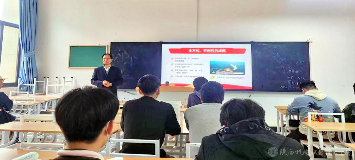 在讲到第二部分气象万千的伟大时代,浓墨重彩的崭新篇章时,伊书记谈到,党的十八大以来,中国特色社会主义进入了新时代。中国特色社会主义新时代,是承前启后、继往开来、在新的历史条件下继续夺取中国特色社会主义伟大胜利的时代,是决胜全面建成小康社会、进而全面建设社会主义现代化强国的时代,是全国各族人民团结奋斗、不断创造美好生活、逐步实现全体人民共同富裕的时代,是全体中华儿女勠力同心、奋力实现中华民族伟大复兴中国梦的时代,是我国不断为人类作出更大贡献的时代。并将《决议》中的“十个明确”为大家一一解读,运用鲜活的事例和经典的党史故事为大家答疑解惑。聆听了伊书记的细心讲解,同学们深刻领会了习近平新时代中国特色社会主义思想的核心内容。