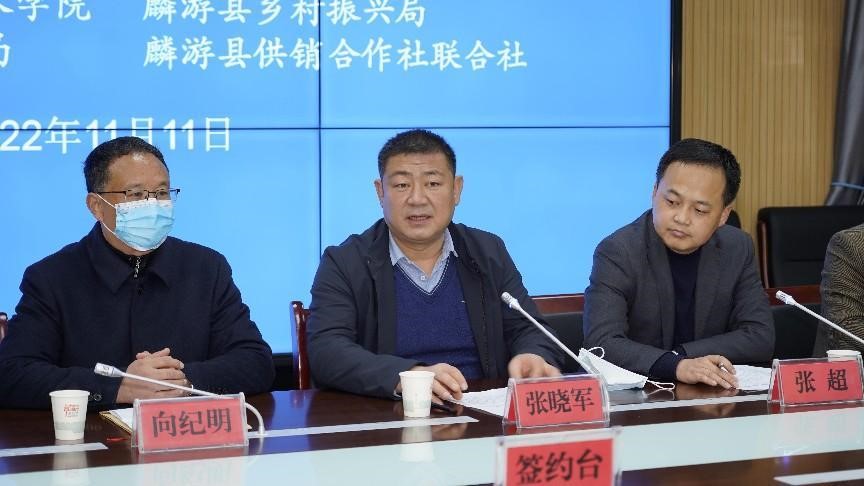 张晓军代表麟游县政府致辞,感谢beat365手机版官方网站发挥高校在科技人才资源等方面的优势,认真贯彻中央省市关于高校结对帮扶,脱贫攻坚的指示精神,连续多年派驻专人深入麟游县九成宫镇澄铭窑村,帮扶农民发展产业,于县供销联社采购麟游县的农副产品,深入职教中心开展职业技能培训,指导中职学校发展等一系列的活动,大力推进了麟游县经济的高速发展。