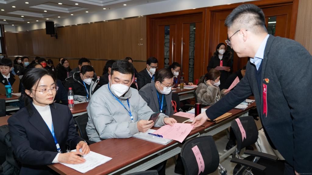 工作人员分发表决票