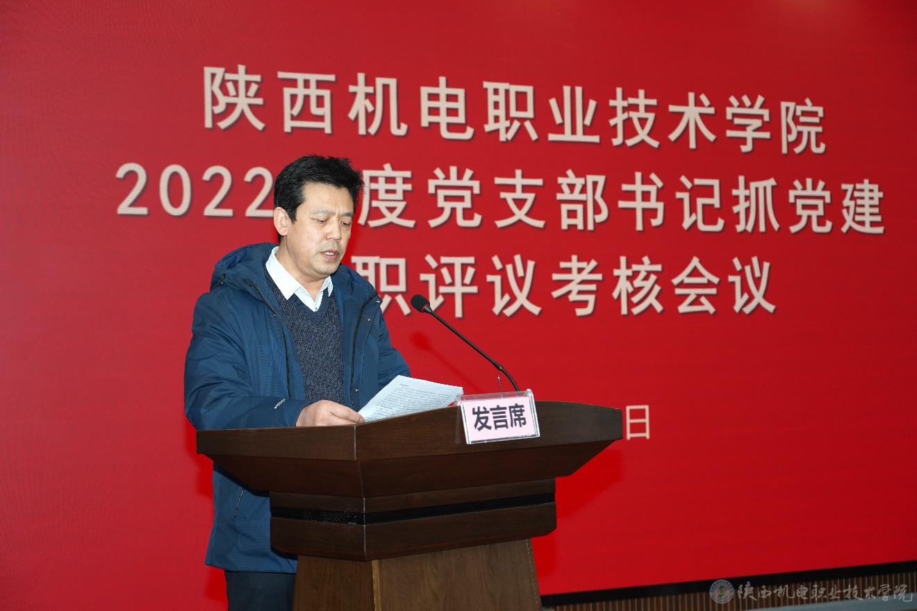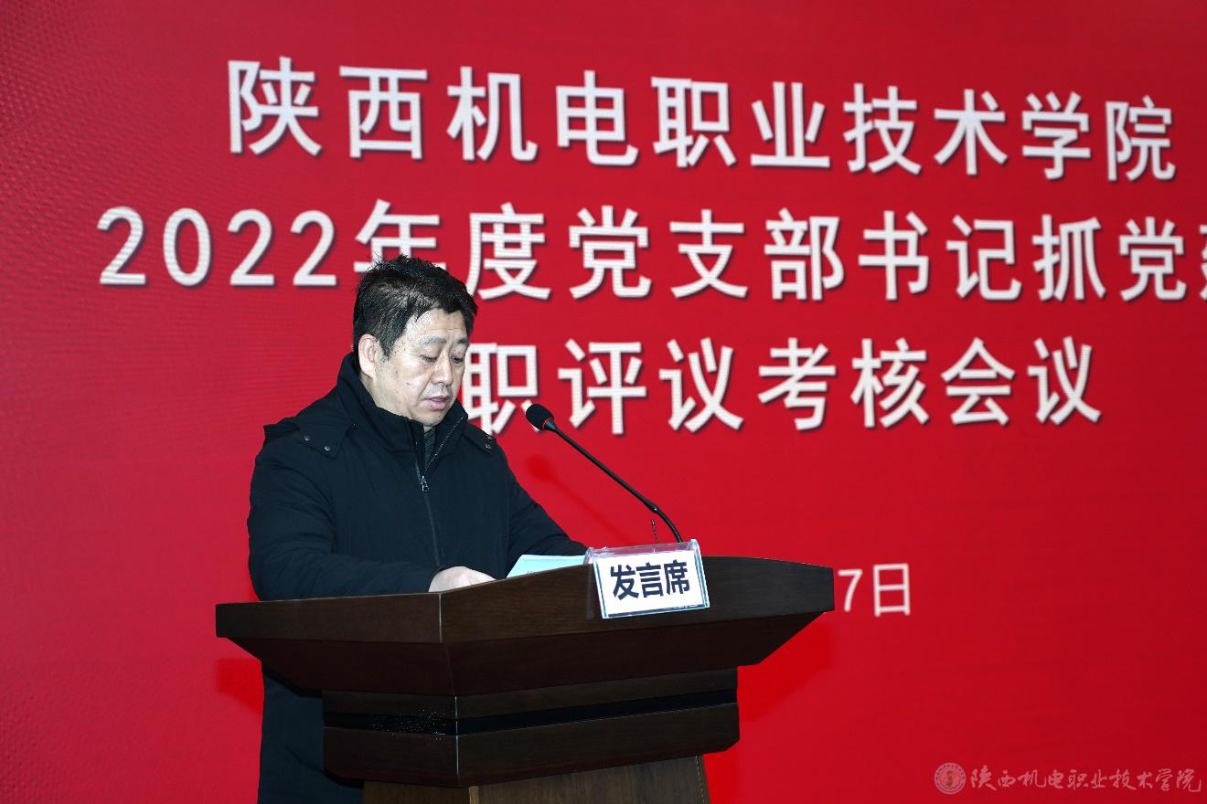 党委委员、院长助理、党委组织部部长赵争东通报了学校各党支部2022年度“三会一课”等制度落实情况及各二级学院2022年度发展党员情况,并就2023年落实“三会一课”等基层党建基本制度、党建活动开展、党建工作考核等进行了安排部署。