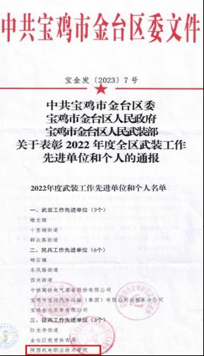 金台区武装工作会议于3月15日召开,对在2022年度征兵工作中表现突出的单位和个人进行了表彰,beat365荣获“征兵工作先进单位”称号。