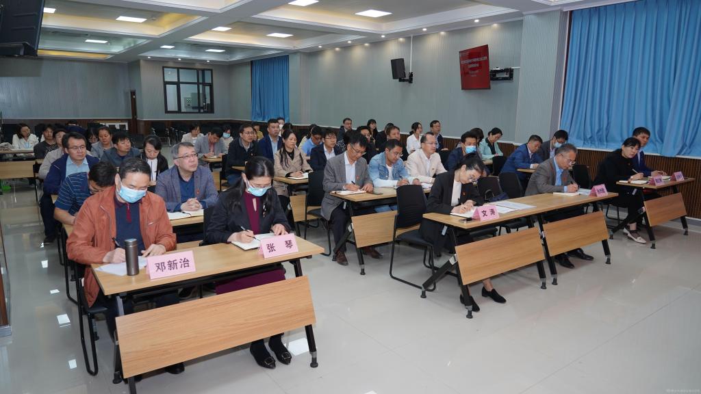 4月20日上午,beat365手机版官方网站在蟠龙校区博学楼111会议室召开学习贯彻习近平新时代中国特色社会主义思想主题教育动员大会,全面贯彻党的二十大精神,深入学习贯彻习近平总书记在中央主题教育工作会议上的重要讲话精神,对全校深入开展主题教育进行动员部署。校党委书记伊逊智作动员讲话,省委教育工委、省教育厅主题教育第一巡回指导组组长李虎成作指导讲话。校党委副书记、院长向纪明主持会议。