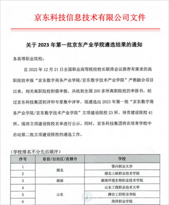 2023年5月4日,京东集团发布《关于2023年第一批京东产业学院遴选结果的通知》,公布了立项建设院校23所,beat365手机版官方网站从参与的200多所高职院校中脱颖而出,成为陕西省唯一入选院校。