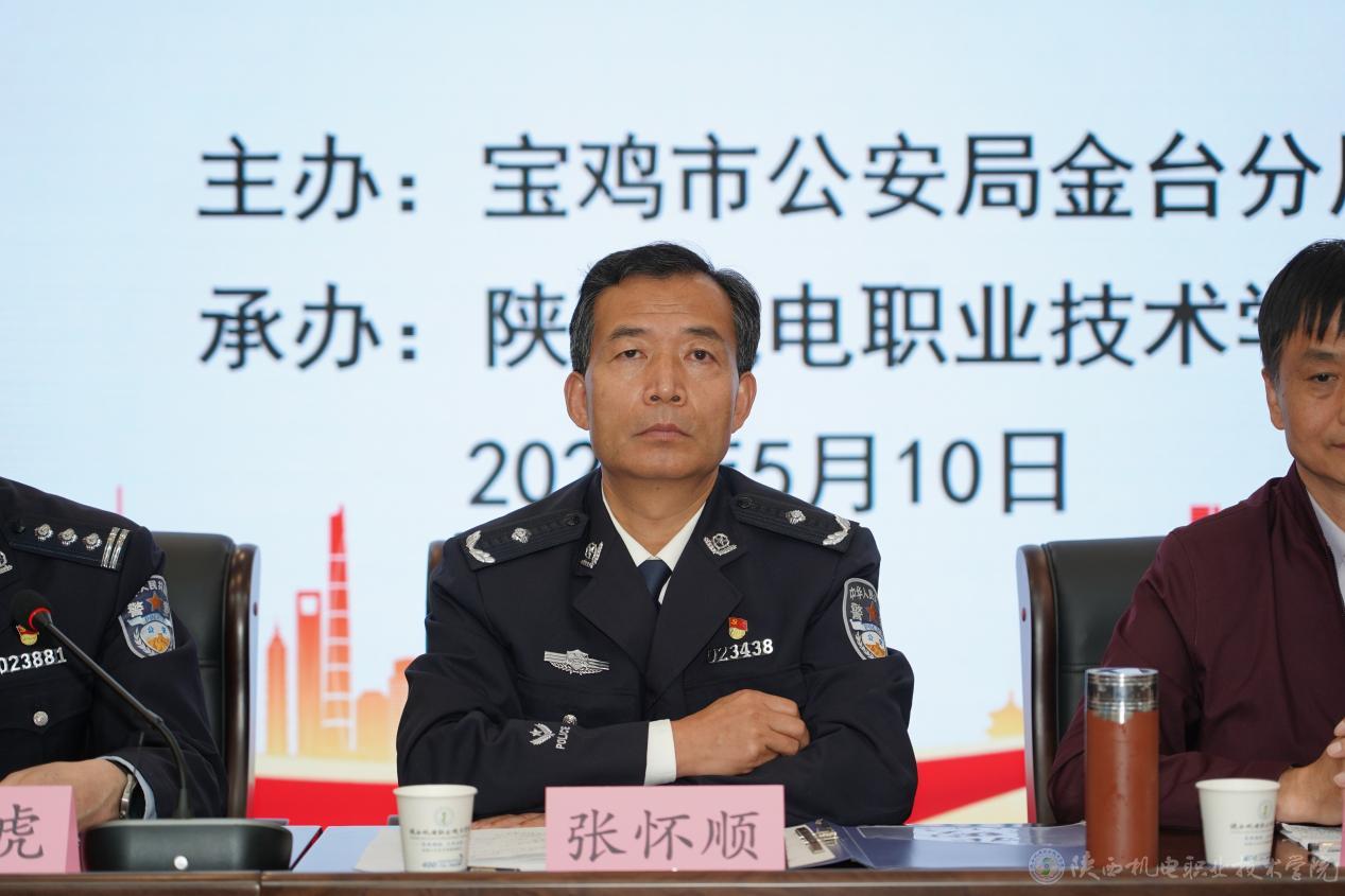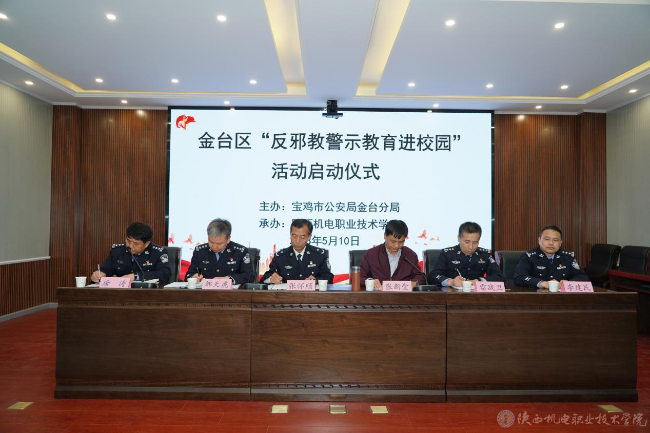 5月10日,宝鸡市金台区“反邪教警示教育进校园”活动启动仪式在beat365手机版官方网站蟠龙校区博学楼111视频会议室举行。宝鸡市公安局副局长张怀顺、金台分局党委书记、局长邹天虎、宝鸡市公安局经文保支队支队长雷战卫、国保支队副支队长李建明、副院长张新堂及保卫处、各二级学院参会,会议由宝鸡市公安局金台分局副局长唐涛主持。
