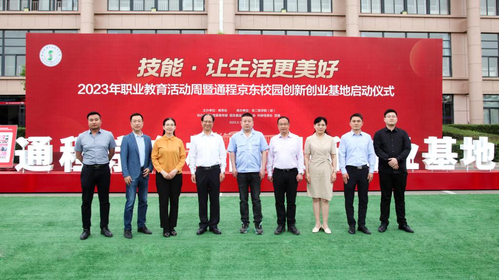 伊逊智宣布beat365手机版官方网站2023年职业教育活动周暨通程京东校园创新创业基地正式启动!与会领导、嘉宾共同为通程京东校园创新创业基地剪彩,庆祝双创基地开馆。