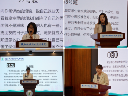 本次大赛包括理论测试、案例研讨、谈心谈话三个环节,全面考察辅导员的理论知识水平、分析研判能力,解决问题能力和教育引导能力。辅导员老师们在各个环节都能够沉着应对、认真作答,深刻剖析案例中学生存在的问题及原因,以恰当的方式方法处理解决,展现出了较高的理论水平、实践经验与专业素养。