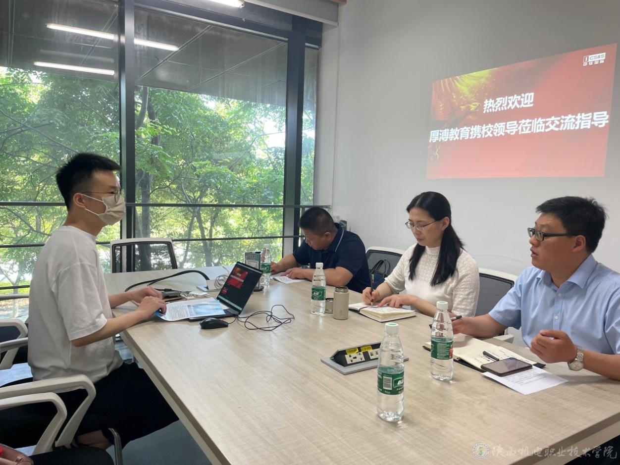 在考察期间,张琴一行就学校与武汉厚溥教育科技有限公司合作以来的运行情况进行了坦诚有效的沟通,肯定了公司在招生、教学等方面好的做法和取得的成绩,也指出了目前在教育教学、实习就业等方面存在的不足。双方表示要进一步完善机制,加强协作,充分发挥双方优势资源,持续提升教育教学质量。