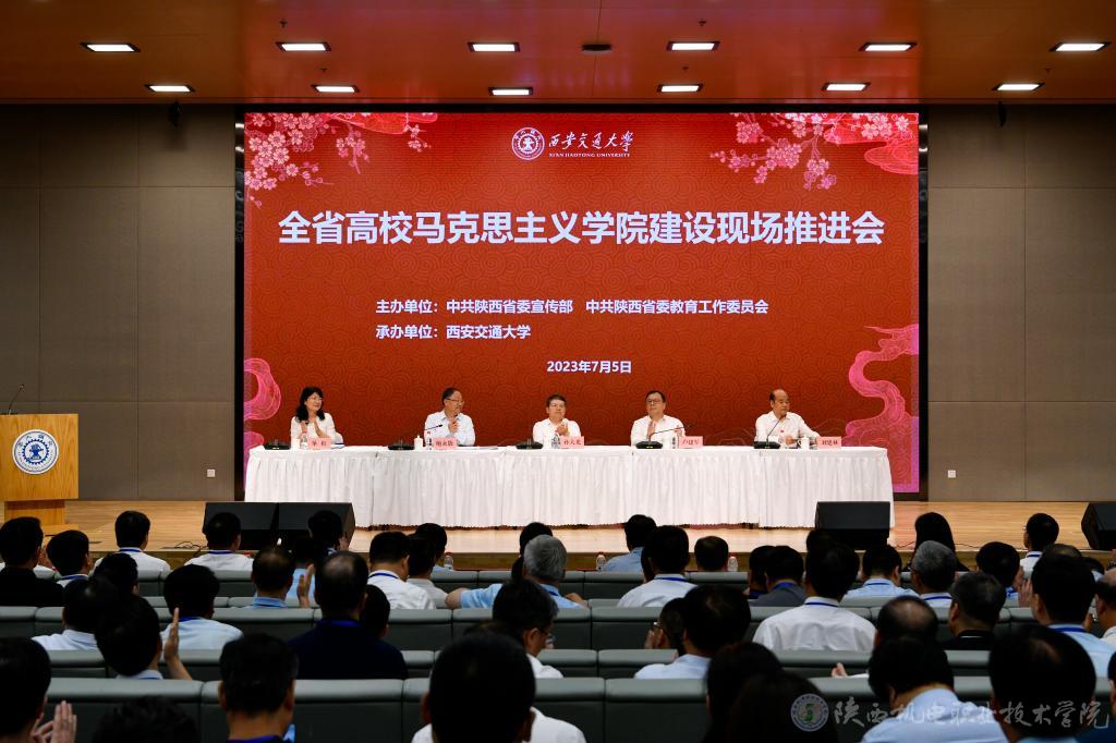 为深入学习贯彻习近平新时代中国特色社会主义思想和党的二十大精神,认真贯彻落实中央《关于加强新时代马克思主义学院建设的意见》精神,推动我省马克思主义学院高质量发展,7月5日下午,全省高校马克思主义学院建设现场推进会在西安交通大学创新港校区召开。省委常委、省委宣传部部长孙大光、西安交通大学党委书记卢建军、省委教育工委书记刘建林、省委宣传部副部长单红以及全省各高校党委主要负责同志出席会议,会议由省委宣传部常务副部长鲍永能主持。beat365党委副书记、纪委书记陈红梅、马克思主义学院负责人王康参加了此次会议。