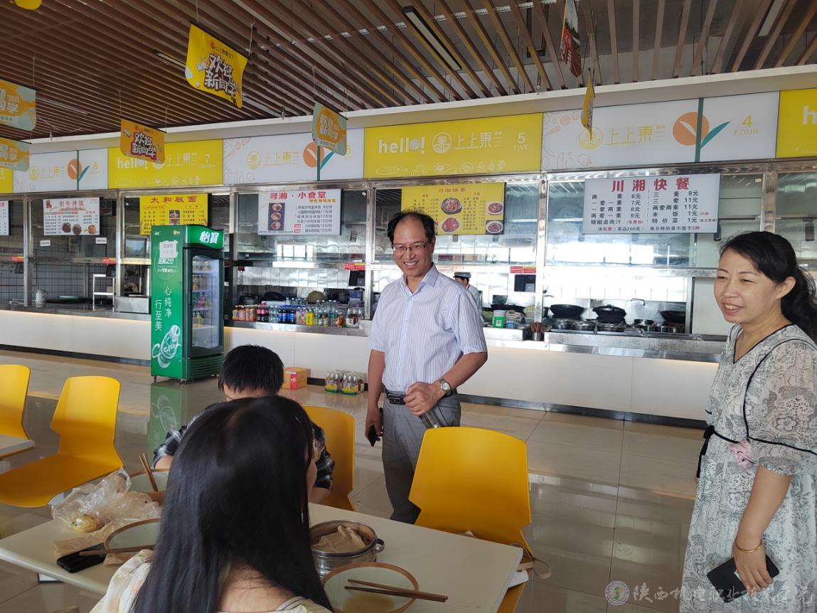 2023年8月4日,学院党委书记伊逊智、党政办主任康健,顶着炎炎烈日,来到蟠龙校区看望留校实习学生,伊书记详细询问了留校实习学生的生活和学习情况,勉励他们认真实习,增强本领,同时要注意个人安全,伊书记要求后勤保障处全力做好留校实习学生的各类生活保障工作,确保留校学生能够安心舒适的学习生活。