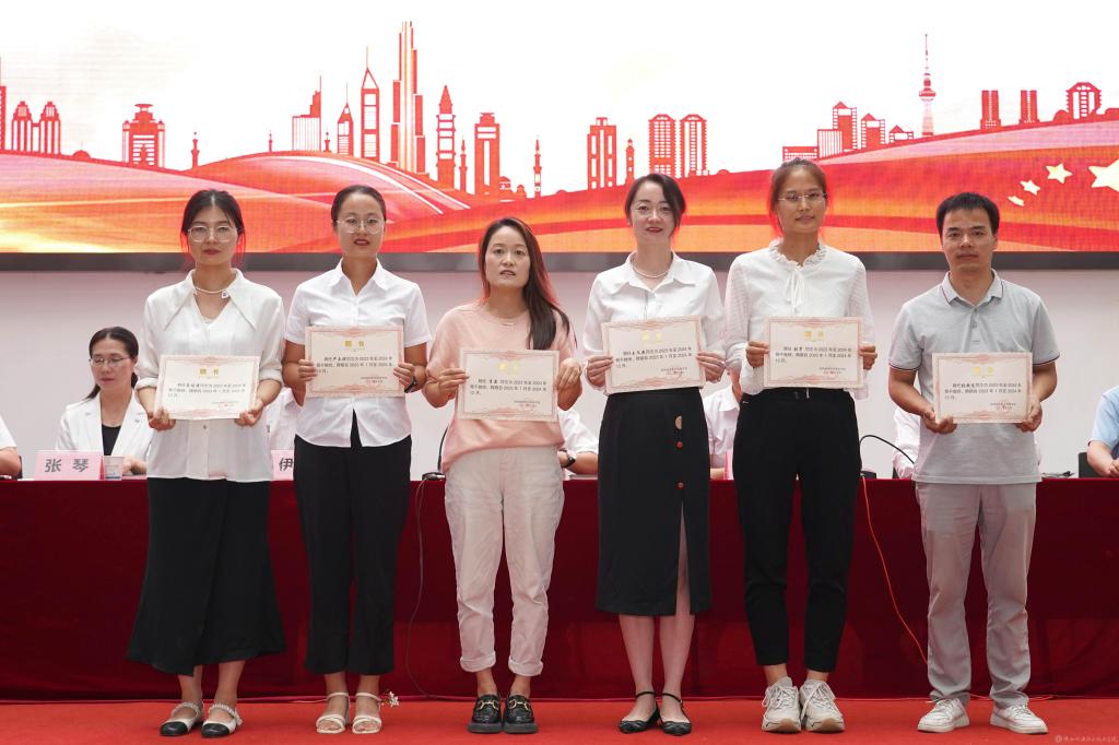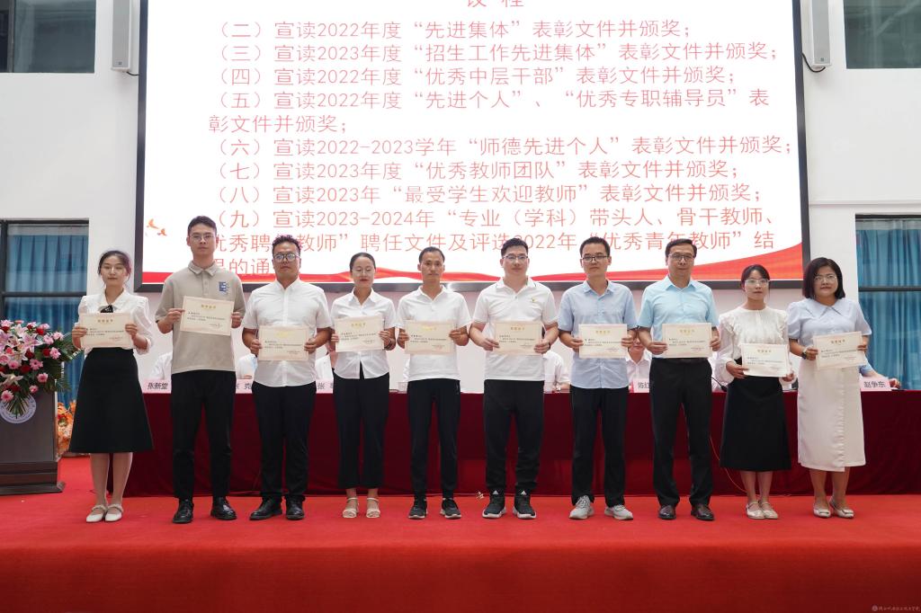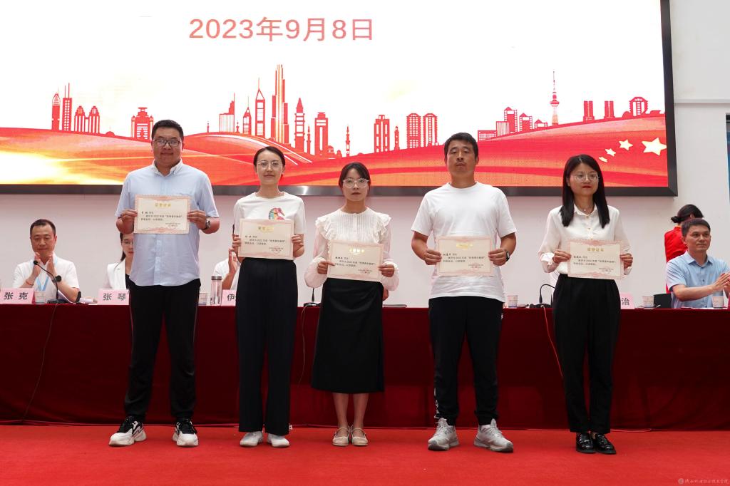 党委委员、副院长张克同志宣读2023年度“优秀教学团队”,2023年“最受学生欢迎的教师”表彰文件;宣读2023-2024年“专业(学科)带头人”“骨干教师”“优秀聘任教师”及评选2022年“优秀青年教师”结果的通知并颁奖。