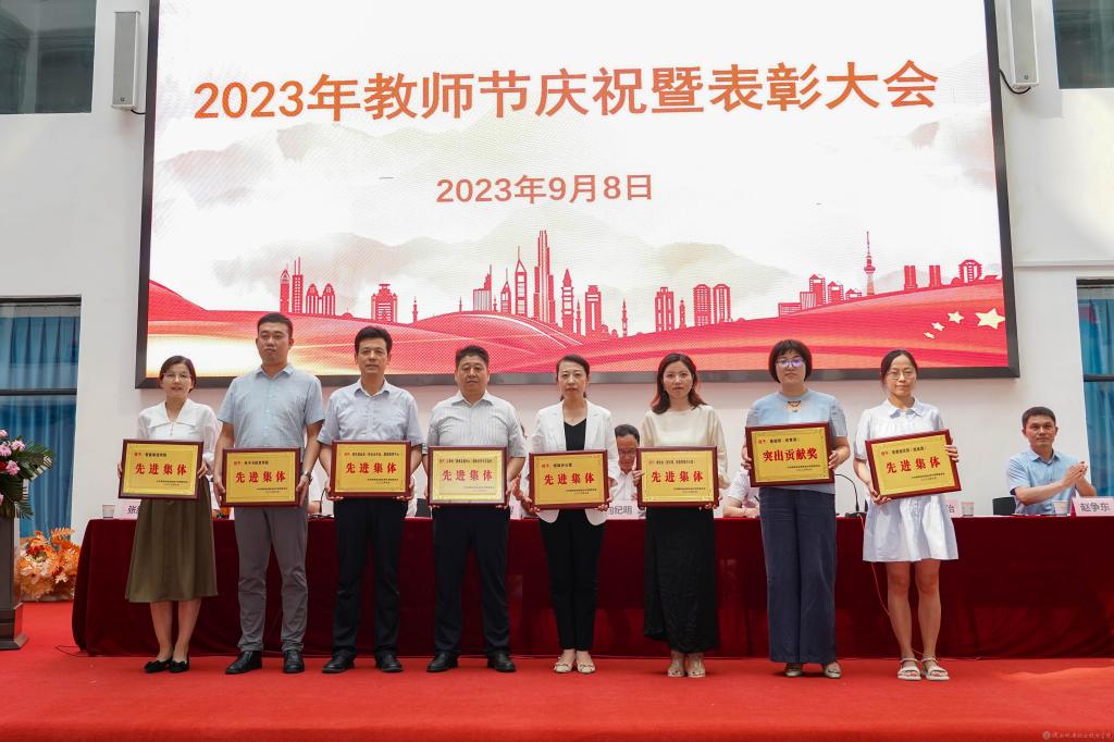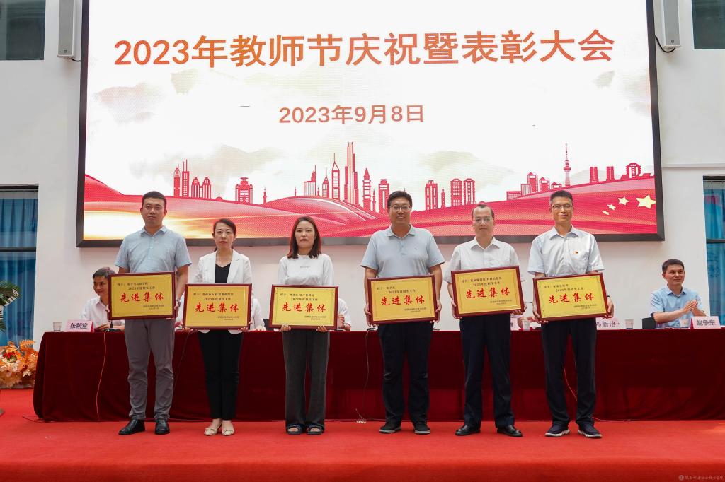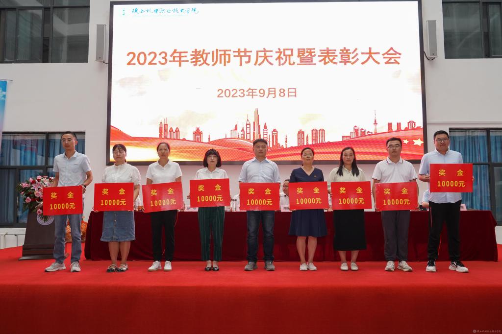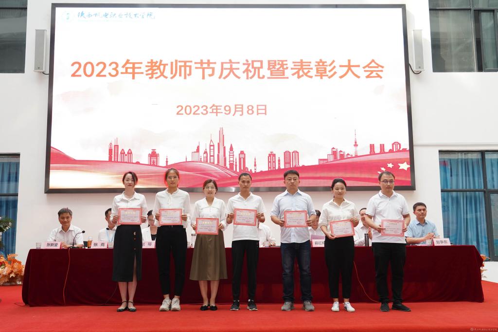 党委副书记张琴同志宣读《陕西省教育厅关于表彰第十三届陕西高职院校教学名师奖获奖教师的通知》并授予鲜花;宣读2022年度“先进集体”,2023年度“招生工作先进集体”表彰文件并颁奖。