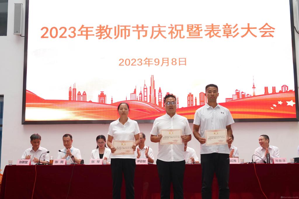 伊逊智强调,今年是学习贯彻习近平新时代中国特色社会主义思想主题教育的开局之年,是我国开启全面建设社会主义现代化国家新征程的关键之年,学校围绕“三步走”发展战略,按照“扩规模、提质量、创特色、树品牌”的总体思路,迁建蟠龙校区,拓展办学空间,改善办学条件,强化人才强校,深耕内涵发展,构建形成“一体两翼”专业发展格局和“九维育人”模式,在增强办学育人实力、提高人才培养质量等方面取得突出成绩,初步建成智能制造特色鲜明的“千亩万人”高职院校。他提出三点要求和希望:第一,坚守教育初心,争做“四有”好老师。广大教师要坚守仁而爱人,坚持“四个相统一”,善用大思政课为党育新人、为国育大才。带头弘扬社会主义核心价值观,点燃学生对真善美的追求向往,努力成为塑造学生品格、品行、品位的“大先生”。第二,持续提升自我,争做“四个引路人”。要牢固树立良好师德师风,加强教师队伍思想政治建设,打造政治素质过硬、业务能力精湛、育人水平高超的教师队伍,努力培养具有就业创业有本领、继续学习有基础、职业发展有潜力、民族复兴有担当的高素质技术技能人才和大国工匠。第三,始终爱校护校,争做学校事业的奋斗者。全面加强党的领导,坚定正确的政治方向,不折不扣贯彻落实好党中央关于教师工作的要求,坚持人才强校战略,围绕国家战略发展方向和地方经济社会发展布局,切实保证个人价值实现与学校事业跨越发展同向并行,增强“等不起”的紧迫感、“慢不得”的危机感、“坐不住”的责任感,持之以恒、不懈努力,力争取得新的更大成绩。