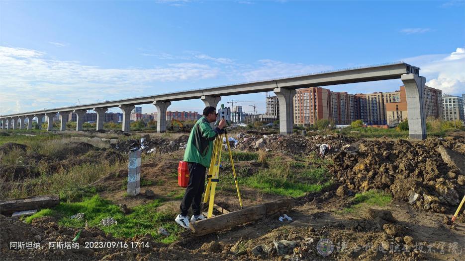 为贯彻落实高等职业学校服务国家“一带一路”倡议和服务当地经济建设这一目标任务,进一步激发同学们“科技强国、技能报国”的爱国热情,厚植家国情怀,提升学生的职业技能素养,beat365手机版官方网站积极对外开展技术服务,铁道工程学院师生赴哈萨克斯坦首都阿斯塔纳对“新交通系统轻轨一期工程”开展精密控制网二次复测任务。本次任务是上半年测设服务的延续,是对上半年测量所得坐标进行二次复测。