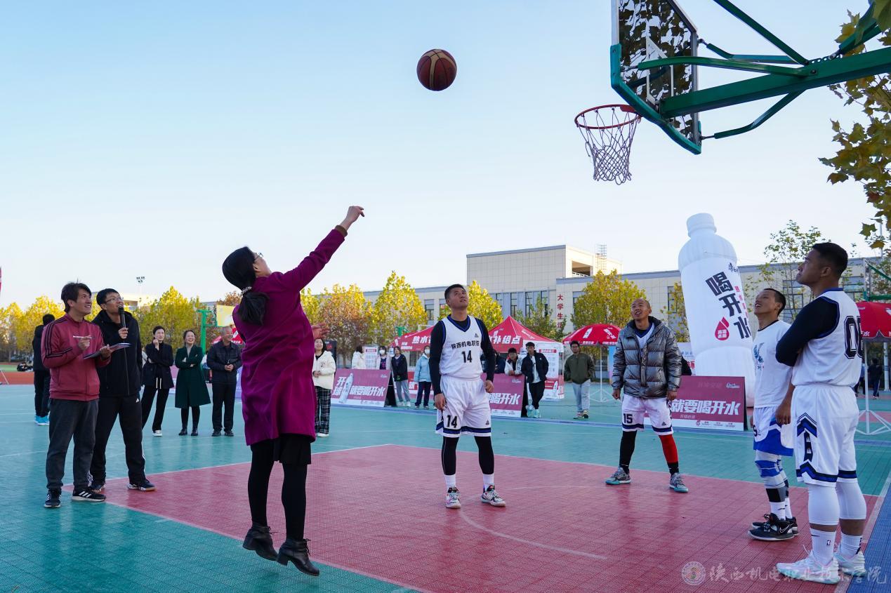 比赛间隙安排了教职工趣味篮球赛。比赛分为两个赛项,男子组定点三分球大赛和女子组定点罚篮比赛,全校三十多名教师热情参与。