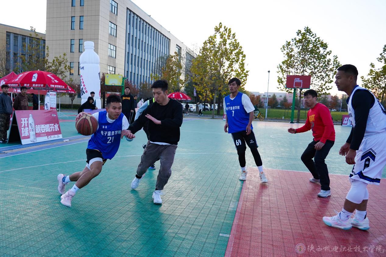 比赛结束后,一场象征着友谊的师生篮球赛热火朝天地举行,赛场上教职工队稳扎稳打、步步为营,学生队机警灵敏、快速反应,双方你拼我抢、酣畅激烈。