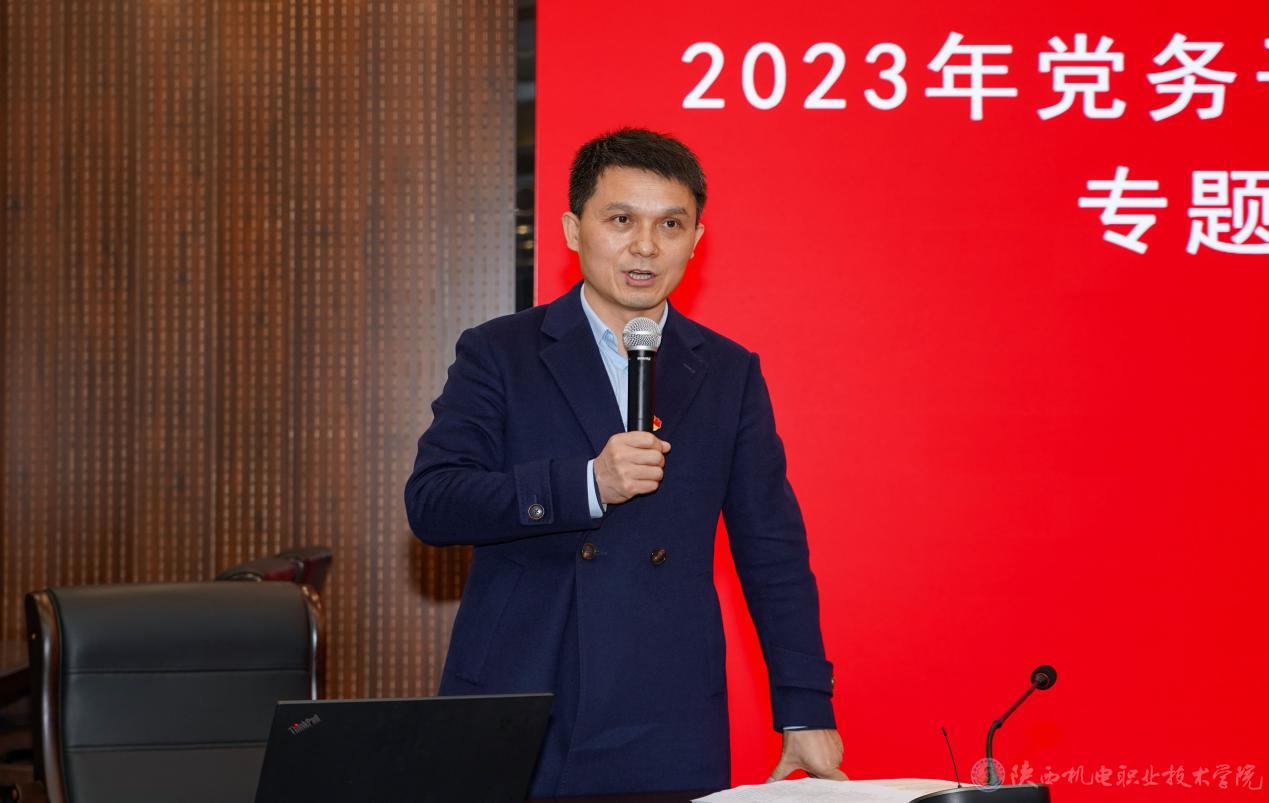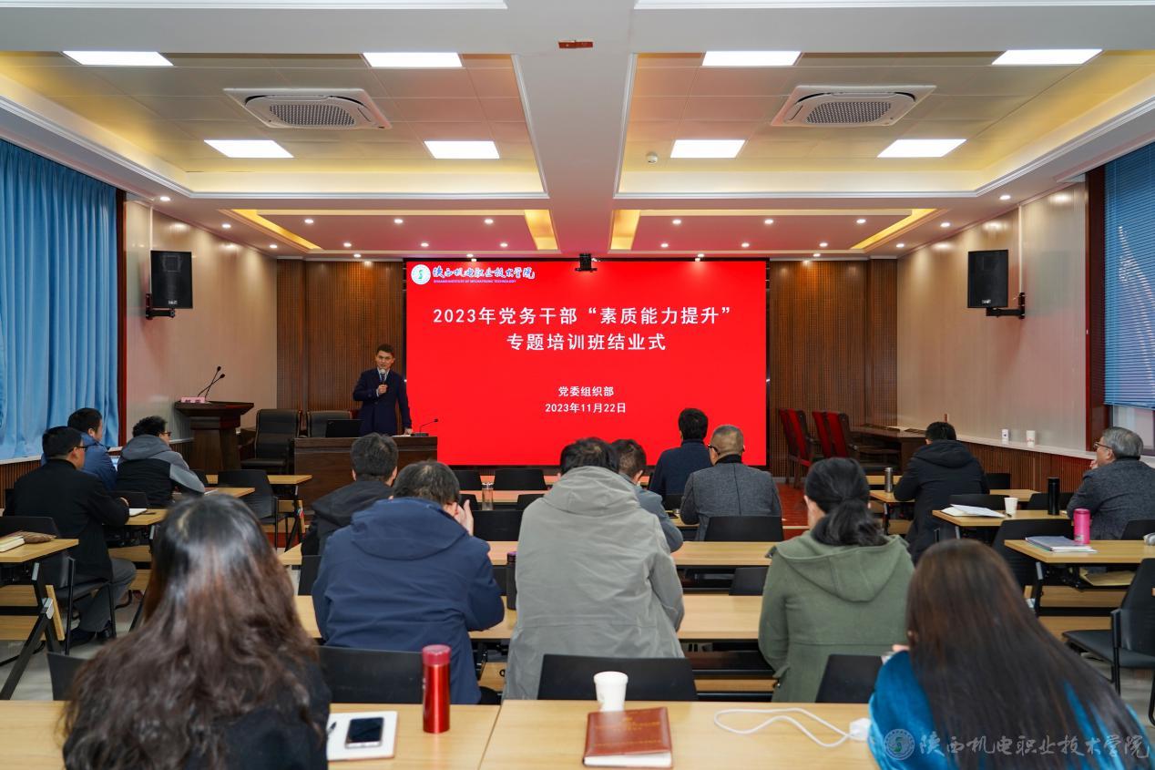 2023年11月22日,beat365手机版官方网站2023年党务干部“素质能力提升”专题培训班在蟠龙校区博学楼111室继续举行。全校各党支部书记、支部委员、党委组织部工作人员参加,党委委员、院长助理、党委组织部部长赵争东主持并作总结讲话。