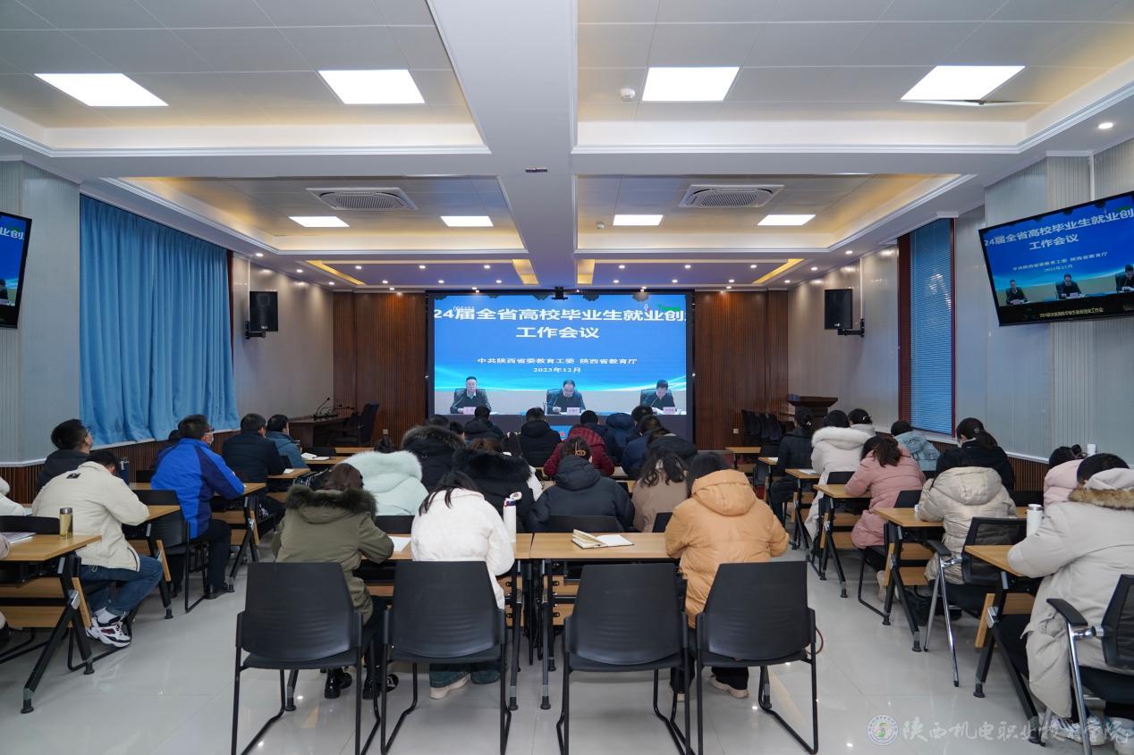 12月27日,陕西省教育厅召开2024届全省高校毕业生就业创业工作视频会,学校党委书记伊逊智在主会场参会。同时,学校在蟠龙校区博学楼视频会议室设立分会场,党委副书记、院长向纪明,招生就业处负责人,各二级学院院长、党支部书记及学工办主任、2024届毕业班辅导员参加会议。