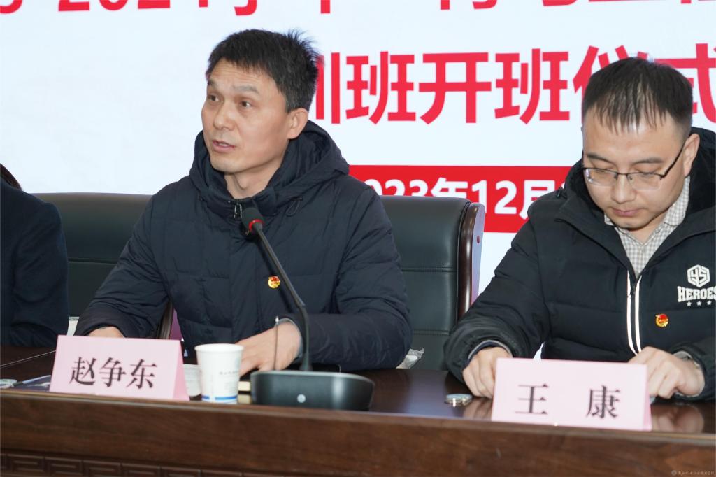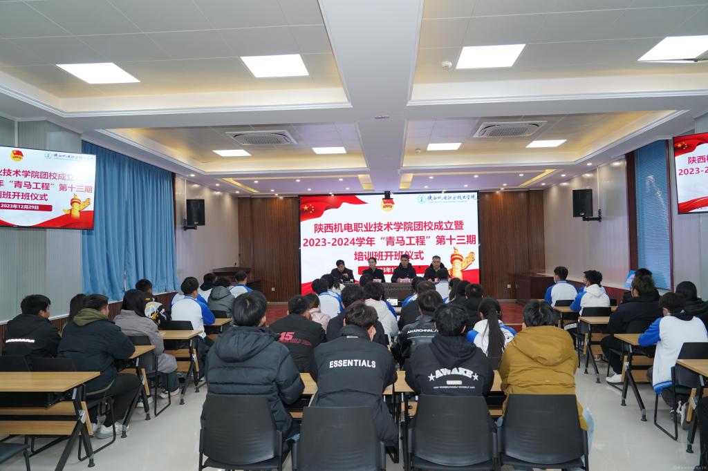 2023年12月29日下午,beat365在蟠龙校区博学楼111会议室召开beat365手机版官方网站团校成立暨2023-2024学年“青马工程”第十三期培训班开班仪式,宝福路校区在汽车机电大楼4楼视频会议室同步进行。党委副书记张琴,党委委员、院长助理赵争东,马克思主义学院负责人王康,各二级学院团总支书记、副书记,第十三期青马班全体成员、学生干部参加开班仪式。仪式由团委书记王枢主持。