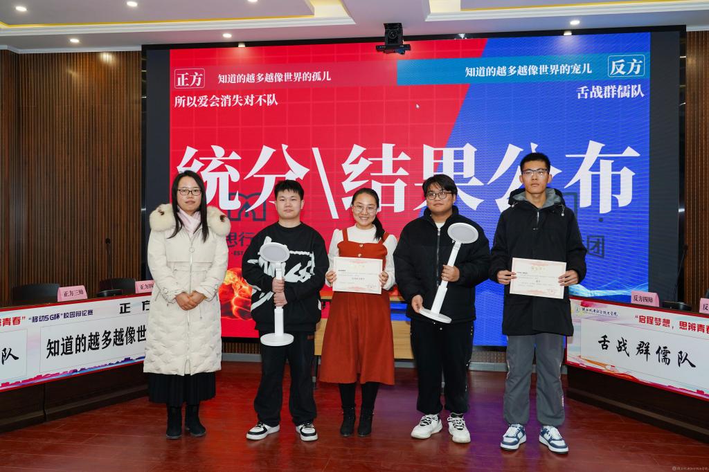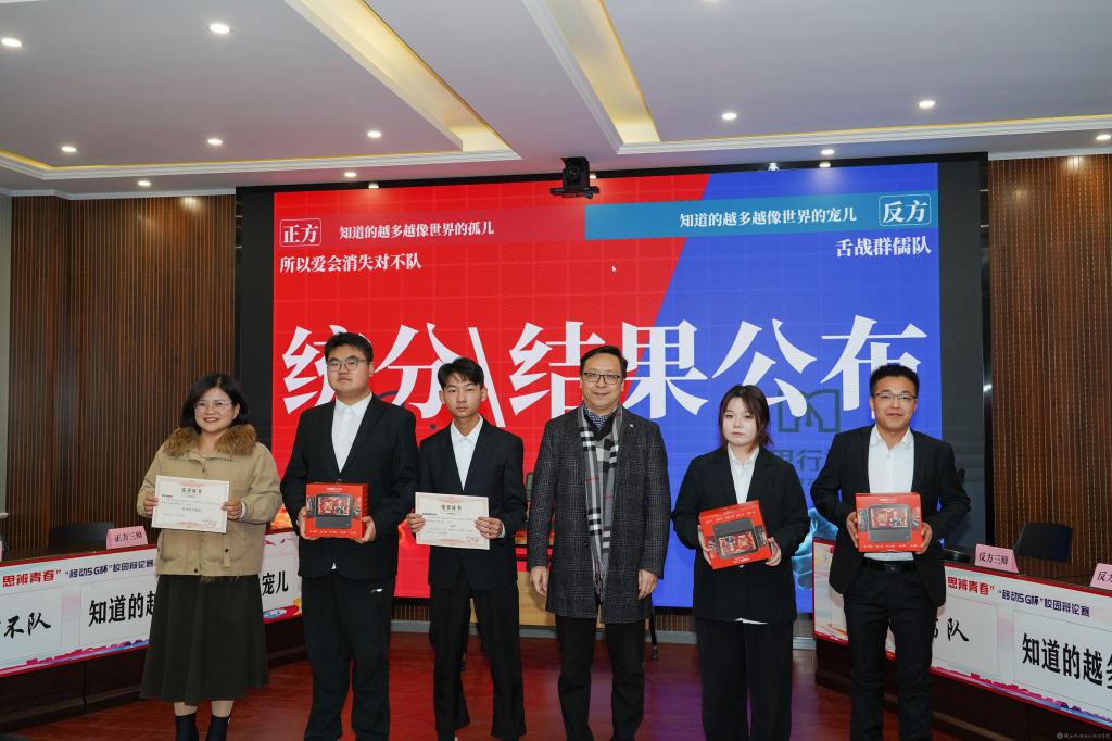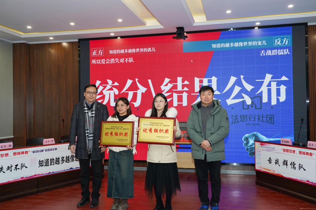 2023年12月28日,beat365手机版官方网站2023年法治宣传系列活动暨启程梦想·思辨青春“移动5G杯”校园辩论赛进行了冠军争夺赛,并举行了颁奖仪式。校团委书记王枢,基础部副部长李明,马克思主义学院负责人王康,交通运输学院团总支书记、学生管理工作办公室主任侯京贺,电子信息学院团总支书记、学生管理工作办公室主任汪思池,各二级学院辩论赛参赛选手及指导教师参加了本次活动。活动由马克思主义学院教师王乐琴主持。